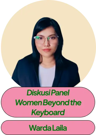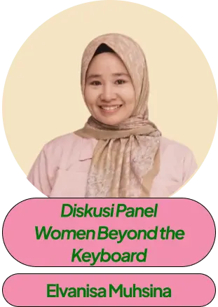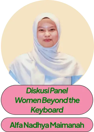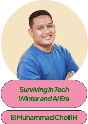 | 10.30 – 11.00 | Sesi 2 | Surviving in Tech Winter and AI Era El Muhammad Cholid Hidayatullah | Diskusi Panel: Women Beyond the Keyboard Elvanisa Muhsina, Alfa Nadhya Maimanah, Warda Laila, Amiratur Rafifah | ||