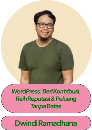 | 14.00 – 14.30 | Sesi 6 | WordPress: Beri Kontribusi, Raih Reputasi & Peluang Tanpa Batas Dwindi Ramadhana | Scale Productivity dengan Automation Restu Muzakir | ||